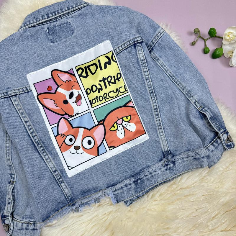 💕Джинсівка Песик. Гарний щільний джинс. Застібка на гудзиках. Рукавчики на манжетах. Малюнок принт на тканині, пришитий. 📐Заміри: рукав від горловини 130 - довж. 43/напівобхват 40/ рук. 47 140 - довж. 44/напівобхват43/ рук. 49 150 - довж. 46/напівобхват 45/ рук. 52
