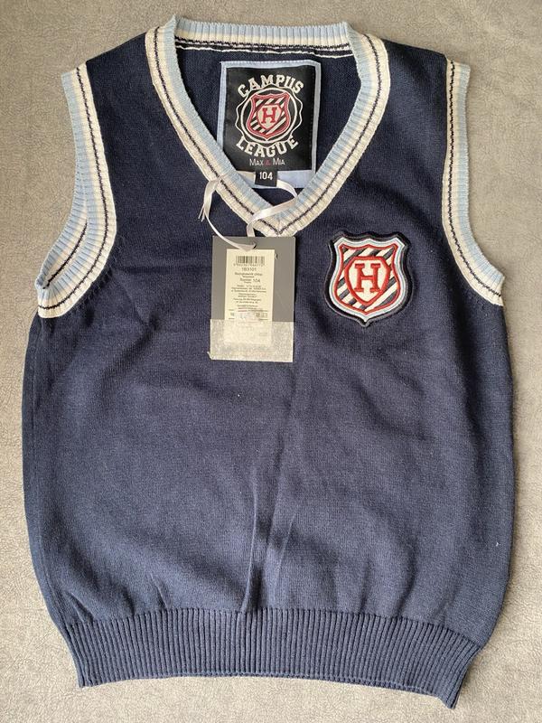 Крупнейший в Польше бренд детской одежды. Компания KOMEX. Размер 104, есть 110. Безрукавка для мальчика – отличное решение для холодных дней. Жилет изготовлен из 100% хлопчатобумажной свитеровой ткани. Имеет декоративную отделку в виде белых и синих полос, а также декоративную вышивку спереди. Темно-синий цвет и классический крой майки делают ее подходящей для больших торжеств и особых случаев. Он будет отлично смотреться с элегантной белой или синей рубашкой