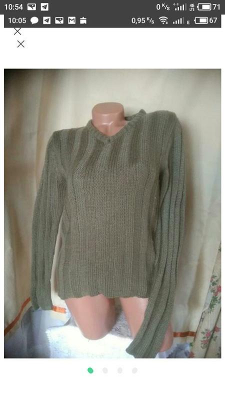 В'язаний джемпер Плечі 38 см ПОГ 45-58 см Вниз на манжеті 43-54 см Рукав 72 см Довжина 60 см Є катишки, видно на фото, більше дефектів немає. Прохання перед замовленням уточняти деталі.