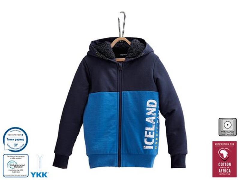 Продам очень теплую и удобную кофту германской фирмы Pepperts,размер 146-152,новая,на молнии, состав ткани:60%хлопок,40 полиэстер.Тамносинего цвета.Замеры:рукав от плеча 53 см,плечи 36 см,ПОГ 44 см, длина по спинке 55 см.