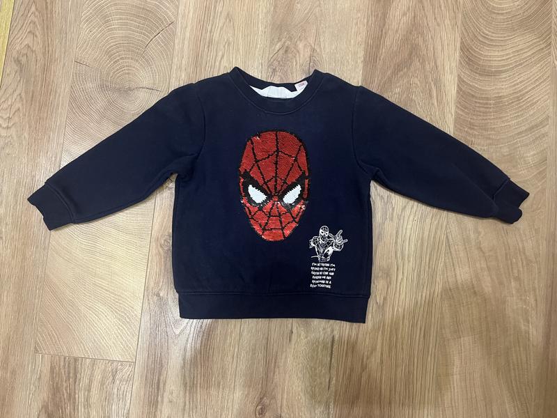 Синій реглан, кофта на хлопчика із спайдерменом. Малюнок змінює колір. Розмір 98
