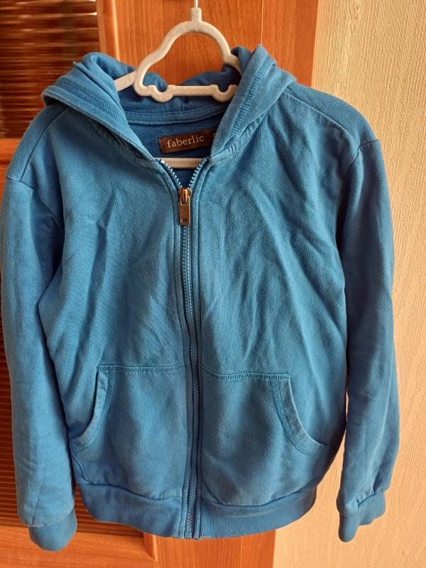 спортивна кофта на хлопця 7-9 років фірми Faberlik. Не сильно тонка. Є нюанси, на третьому фото видно. Довжина 46, пог 38, рукав від плеча 43. Замок працює добре. 100 % котон + 100% хлопок Для вулиці підійде ще й як))