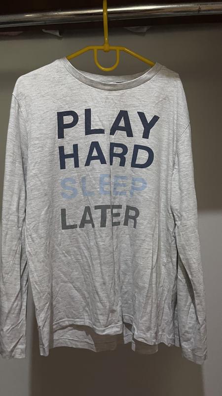 Кофта в світлому відтінку з надписами «PLAY, HARD, SLEEP, LATER” Без плям