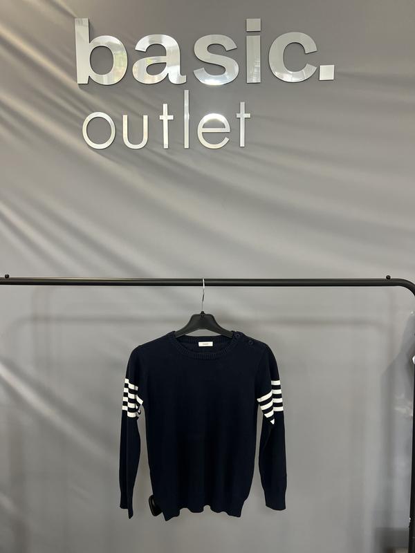 Кофта дитяча Manai Темно-синя трикотажна кофта з круглим вирізом, білими смужками на рукавах і ґудзиками на плечі. Ідеальна для повсякденного використання.