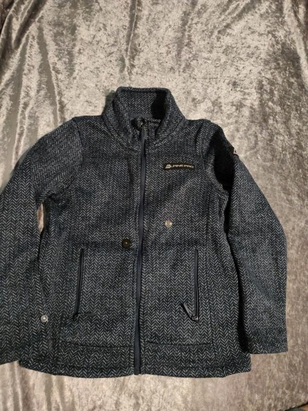 флісова кофта або джемпер з візерунком "ялинка" (herringbone). На етикетці вказано розмір 128/134, має гарний вигляд хорошо доглянутий, теплий