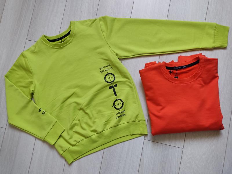 Яскраві кофти для хлопчика. Наявний розмір та заміри (довжина по спинці, полуохват, довжина рукава) Салатова: р.152- 57/46/55 Помаранчева: р.152- 55/46/54 р.164- 58/47/57 Швидка відправка Укрпоштою або Новою поштою