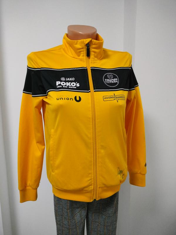 Спортивна кофта на хлопчика чи дівчинку. З написами.Насичений жовтогарячий колір, зручні кишені на замку Заміри на фото.