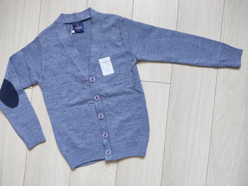 Кардіган для хлопчика дрібної в'язки. Наявний розмір та заміри (довжина по спинці, полуохват, довжина рукава) р.138- 50/34/44; р.152- 55/38/50. Швидка відправка Укрпоштою або Новою поштою.