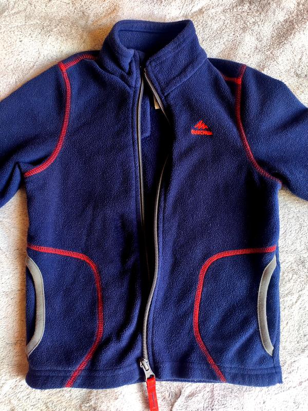 Дитяча фліска від Декатлон унісекс, одягалася дуже мало, в дуже хорошому стані без дефектів. Підходить на весняно осінній період, також і в зимній під лижну куртку чи комбінезон. Розмір 96-102см, вік 3-4 роки. колір темно синій з оранжевими вставками. Кишені обшиті сірим кольором.