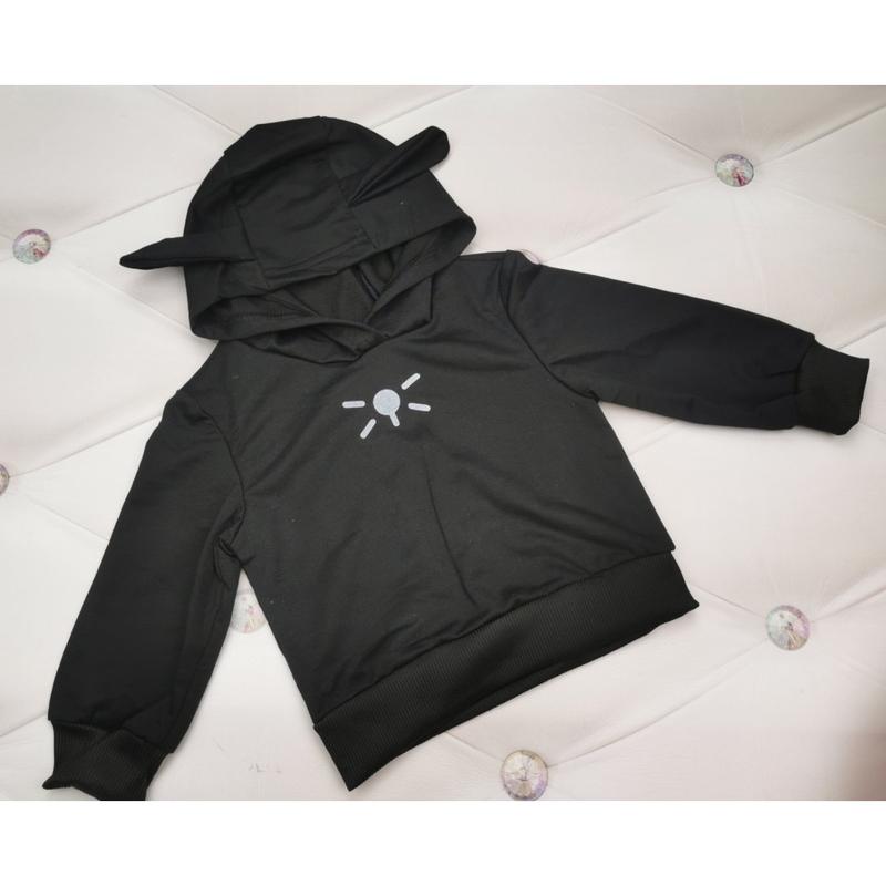 Стильний джемпер для дівчаток та хлопчиків з капюшоном, декорованим вушками Зайчика. Тканина 100% бавовна. Рукавчики на манжетах. Заміри: ===РОЗМІР 80=== довжина 29 см ширина 26 см плечі 26 см рукав від плеча 26 см ===РОЗМІР 90=== довжина 31 см ширина 29 см плечі 28 см рукав від плеча 29 см ===РОЗМІР 100=== довжина 34 см ширина 31 см плечі 28 см рукав від плеча 33 см ===РОЗМІР 110=== довжина 37 см ширина 34 см плечі 29 см рукав від плеча 35 см ===РОЗМІР 120=== довжина 40 см ширина 35 см плечі 30 см рукав від плеча 38 см ===РОЗМІР 130=== довжина 42 см ширина 36 см плечі 31 см рукав від плеча 41 см
