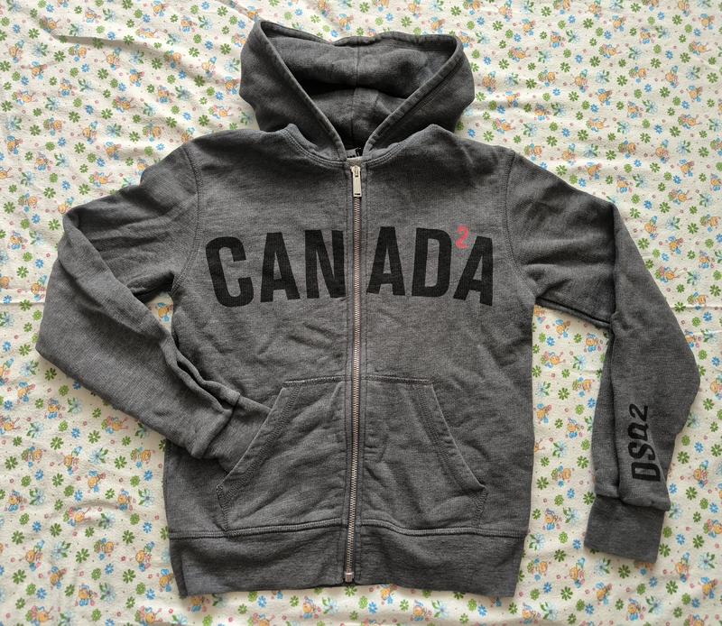 Кофта на хлопчика, ідеальний стан, блискавка металева. Кофта плотна, не тонка. 92% хлопка. Виробник Італія. Дві кишеньки. позаду на капюшоні емблема червоний листочок. орієнтовно на 9-12 р., але дивіться заміри на фото.