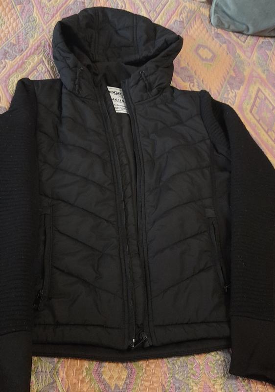 Стеганая спереди и сзади спортивная кофта для пледлютков, длина изделия 54 см, длина рукава 66 см.