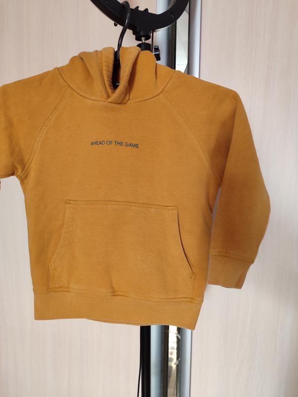 Теплый худи рыжего горчичного цвета.