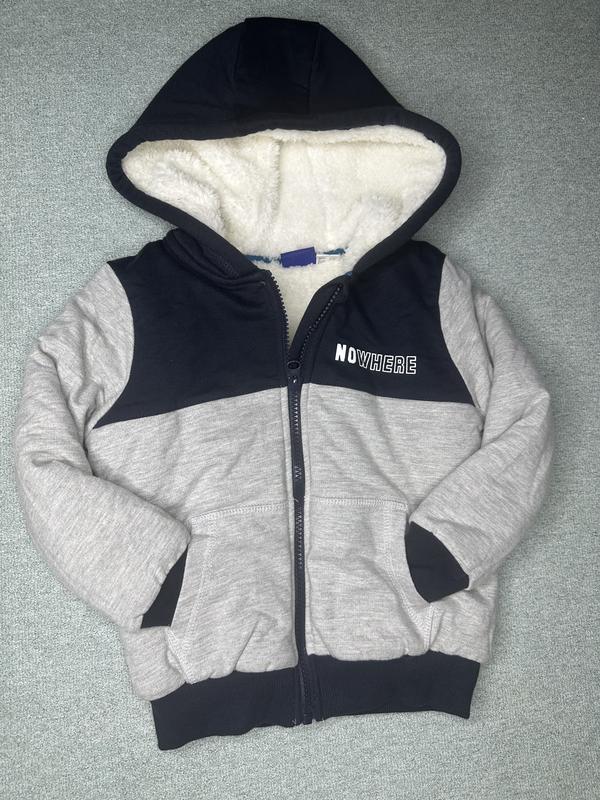Тепла кофта на хлопчика lupilu 🔹всередині мєховушка , можно вдягати під верхній одяг-взимку ❄️, а по весні - як бомпер 🔹 має капюшон, кишені, рукава на резинці Розмір: 98/104 (3-4 р.)