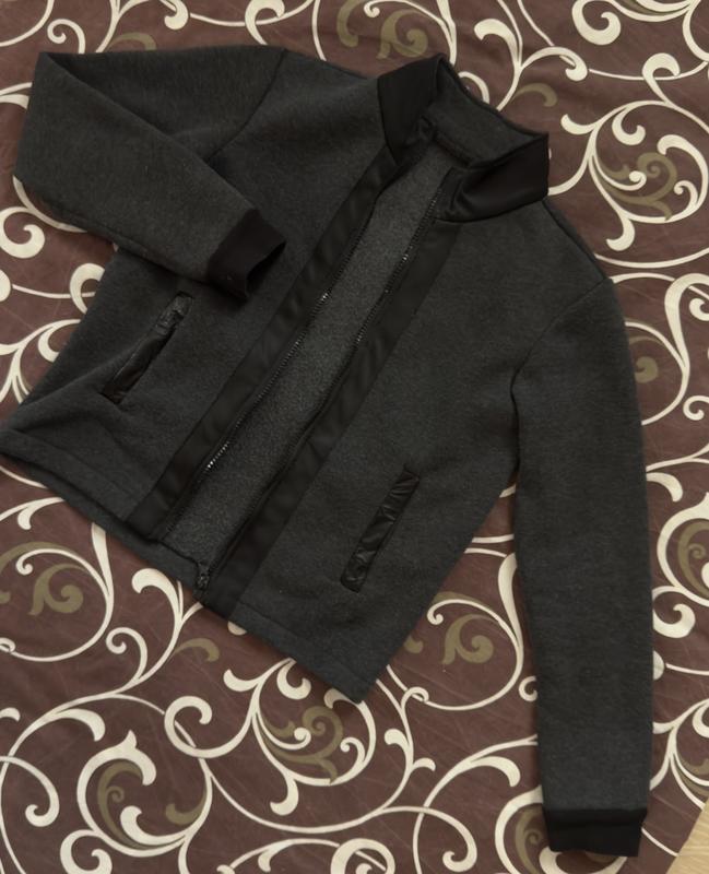 Продам практичну та стильну кофту темно-сірого (антрацитового) кольору. Модель має сучасний крій, що нагадує легкий бомбер або спортивний піджак. Чудово підійде для повсякденного носіння (casual) або занять спортом. Стан: Вживаний, у відмінному стані (без катишків, зачіпок чи дефектів). Колір: Темно-сірий меланж із контрастними чорними вставками. Деталі: * Якісна блискавка по всій довжині. Дві зручні бокові кишені Еластичні манжети та комір-стійка, що добре тримають форму. Матеріал: М’який, приємний до тіла трикотаж (ймовірно, з додаванням бавовни), добре зберігає тепло та «дихає».