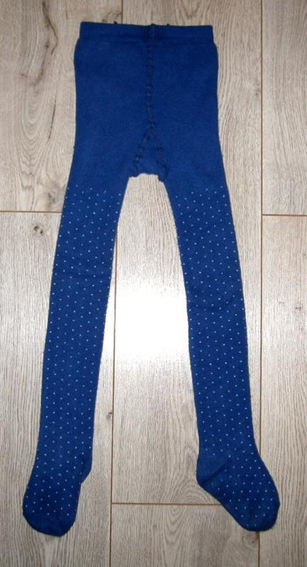 Фирменные махровые теплые колготы серо-синие в снежинках в состоянии новых. Длина по боковому шву включительно с носочком - 70 см., длина шаговая включая пяточку - 45 см.