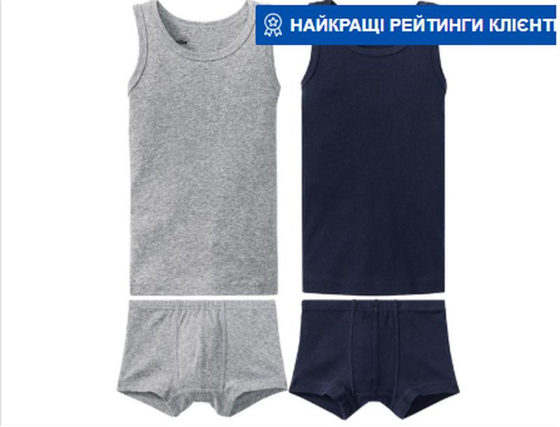 Набір білизни Lupilu Специфікація: Тип білизни: комплект, майка, труси Матеріал: бавовна, еластан Склад: 100% бавовна В набір входить - 2 майки, 2 трусів. Розміри в наявності: 86/92 - 1,5 - 2 року