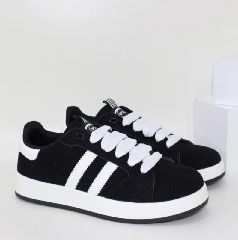 Замшеві чорні скейтери з білими об'ємними шнурками. Код: 114140 (JH30-15) Бренд: Yang Матеріал верху штучна замша Матеріал устілки текстиль Кольори в наявності чорний Сезонність осінь, весна Країна виробник Китай Заміри по устілці 36-23.3см 37-23.8см 38-24.3см 39-24.8см 40-25.3см 41-26.0см