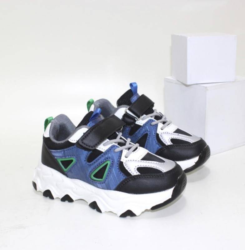 Чорні кросівки для хлопчиків із синіми та сірими вставками Код: 114996 (GY2358-2B) Бренд: OFYA Матеріал верху штучна шкіра Матеріал підкладки текстиль Матеріал устілки текстиль підошва піна Висота підошви 3.5 см Кольори в наявності чорний Сезонність осінь, весна Країна виробник Китай Заміри по устілці 26-16.5см 27-17.0см 28-17.5см 29-18.0см 30-18.8см 31-19.5см