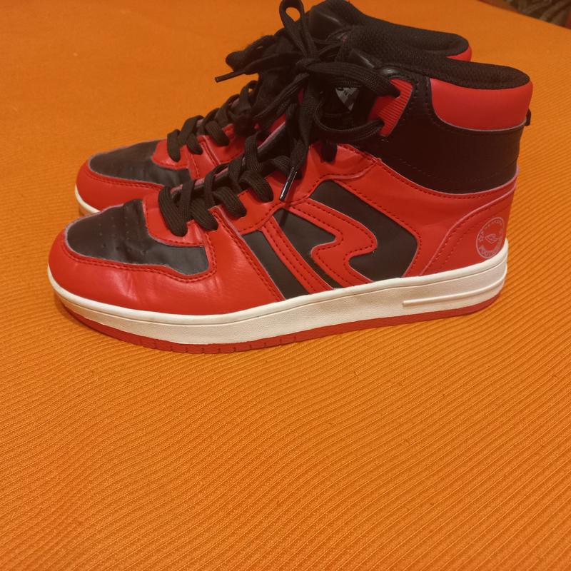 Bисокі кросівки Sneakers Footwear хайтопи розмір 37 см устілка 24 см червоно-чорного кольору, мають виразний дизайн з чорними вставками.