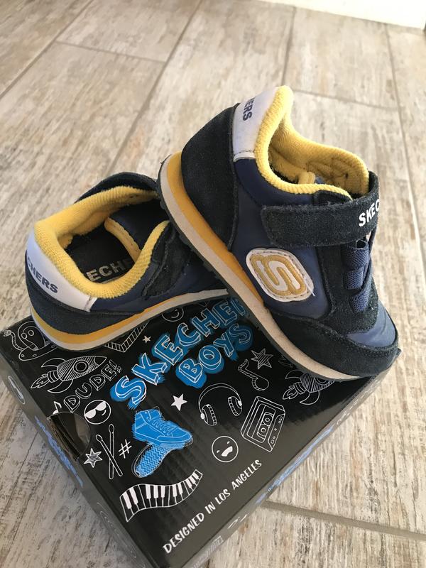 Кросівки Skechers 22 розмір. Комбінований верх: натуральна замша і текстиль. Антибактеріальне покриття, що перешкоджає неприємному запаху у взутті. Застібка-липучка + гумки. Легкі та зручні у гарному стані.