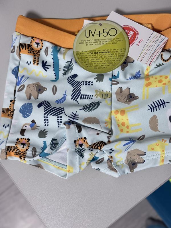 Дитячі плавки зі звіриним принтом для маленьких дослідників (розмір 92/98) пояс 44 см тягнеться до 50 см Готові до літніх пригод? Ці чарівні дитячі плавки розміром 92/98 ідеально підійдуть для ваших малюків віком приблизно від 1,5 до 3 років, забезпечуючи комфорт та стильний вигляд під час ігор у воді та на пляжі! Особливості, які вам сподобаються: * Яскравий звіриний принт: Дозвольте вашій дитині поринути у світ диких тварин з цими веселими та барвистими принтами! Чи то грайливі левенята, милі панди або смішні мавпочки – ваш малюк буде в захваті від такого дизайну. * Комфорт та якість: Виготовлені з високоякісних, швидковисихаючих матеріалів, ці плавки дуже м'які та приємні до чутливої дитячої шкіри. Вони забезпечують повну свободу рухів для активних ігор. * Надійний захист: Тканина стійка до хлору та солоної води, що гарантує довговічність кольорів і форми навіть після численних купань. Забудьте про вицвітання! * Ідеальна посадка: Еластичний пояс забезпечує надійну, але не стискаючу посадку, що дозволяє плавками залишатися на місці під час будь-яких водних розваг. Ці плавки – чудовий вибір для відпустки, басейну або просто для ігор у спекотний день. Подаруйте вашому малюкові радість літа з цими милими та практичними плавками! Не пропустіть можливість зробити літо вашого малюка ще яскравішим!