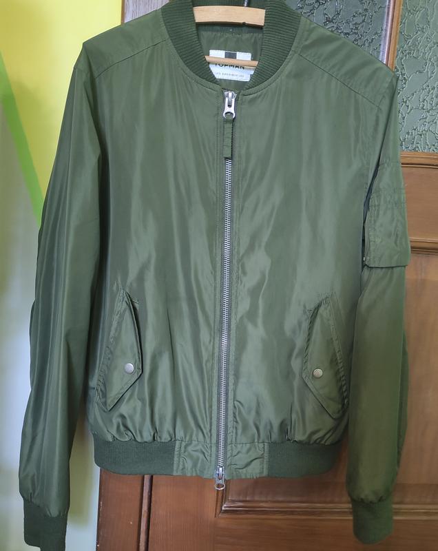 Стильний бомбер для підлітка. Бренд TOPMAN. Заявлений розмір S Плечі- 44 довжина від шва коміра посередині спини -69 ширина грудей під пахвами 52,5 довжина зовнішнього шва рукава 65 см..