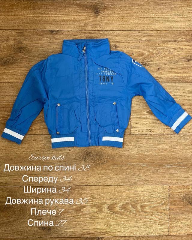 Легенька вітровка на вік 4 роки, зріст 98-104 см. Вітровка на трикотажній підкладці, рукава на плащовій. Є капішон, який ховається в карманчик. Стан ідеальний, але на спині трохи затерта фарба.