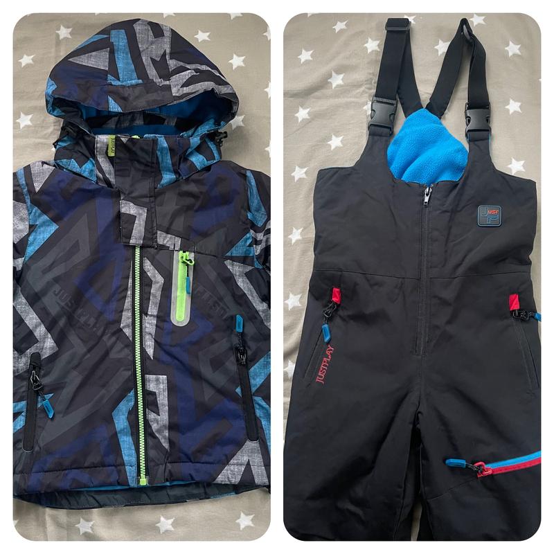 Зимовий костюм (термо-куртка+комбінезон).Фірма JustPlay. Розмір 104-110. Стан хороший, з недоліків є дірочка ззаду на плечі на фото показала і потерті трішки рукава на фото показала.