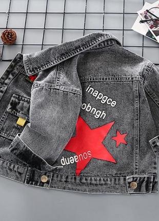 ✅В НАЯВНОСТІ✅ 💦 Стильна, універсальна джинсовочка класичного крою із сірого щільного деніму 💦 накладний карман та вишуканий декор додає родзинку моделі 💦 матеріал-джинс, застібається на металеві гудзики 💦 замір рукава від горловини 💦 універсальна та практична ✅РОЗМІРИ В НАЯВНОСТІ: 💢 90р - 2шт 💢 100р - 2шт 💢 110р - 2шт 💢 120р - 2шт 💢 130р - 2шт ✅ЗАМІРИ: 💎90р - довжина 34см, ширина 32см, рукав 34см; 💎100р - довжина 36см, ширина 33см, рукав 36см; 💎110р - довжина 39см, ширина 34см, рукав 40см; 💎120р - довжина 41см, ширина 36см, рукав 42см; 💎130р - довжина 46см, ширина 39см, рукав 46см; Happy