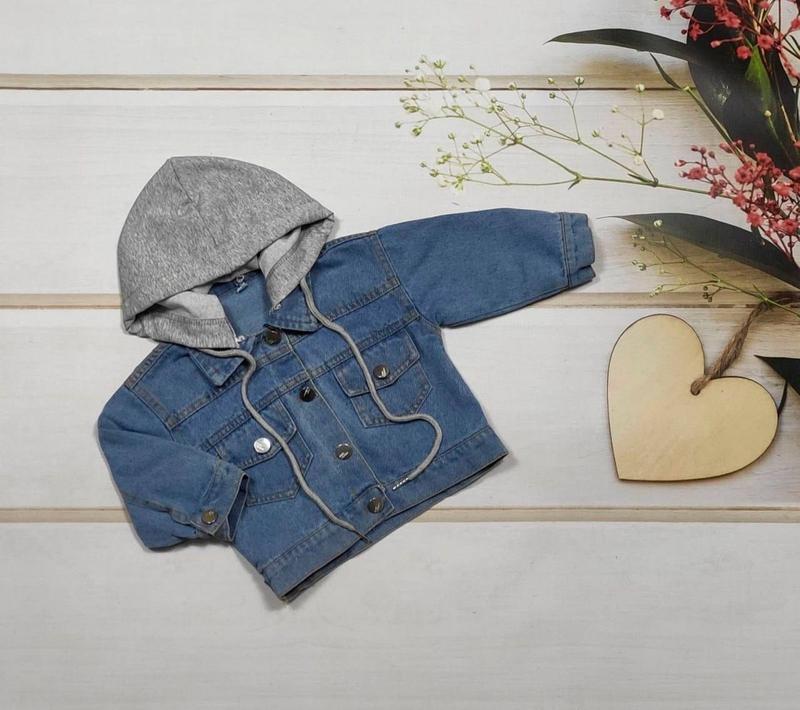 Джинсовий піджак . Щільний джинс. Капюшон з'ємний. Розміри пишу по бирці, дивіться заміри. р.90см. - дов. 33см., ширина 34см., рукав від горловини 34см. р.100см. - дов. 36см., ширина 36см., рукав від горловини 36см. р.110см. - дов. 38см., ширина 36,5см., рукав від горловини 37см. р.120см. - дов. 41см., ширина 39см., рукав від горловини 40см. р.130см. - дов. 45см., ширина 42см., рукав від горловини 42см. 💸Ціна 775грн Заміри робили однієї ростовки, допустима похибка 1-3см.