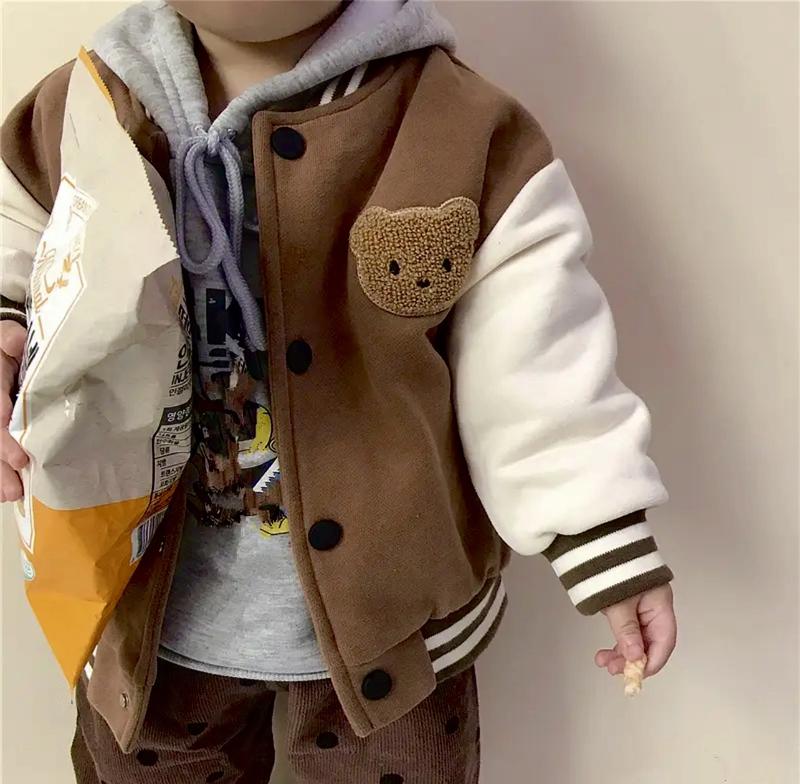Стильний Бомбер для діток.Колір -коричневий +білий. На гудзичках ,є кармани, манжети . Малюнки нашивка.Теплий . Тканина - трикотаж +міцна тканина ,типу як тринитка. Не кошлатиться,якість просто супер ♥️ 🦄Розміри: 80(5 шт) 90(5 шт) 100(5 шт) 110(5 шт) 🦄 Заміри: 🦄80:Довжина 34,пог 34, рукав від горла 32 см. 🦄90:Довжина 37,пог 35,рукав від горла 35 см. 🦄100:Довжина 39,пог 36,рукав від горла 37 см. 🦄110:Довжина 41,пог 38,рукав від горла 42 см. Орієнтація на заміри, допускається похибка в 1-1,5 см.