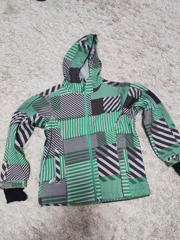 легенька куртка, прорезинена тканина, захистить від вітру та дощу, заміри на фото, є потертості на рукавах