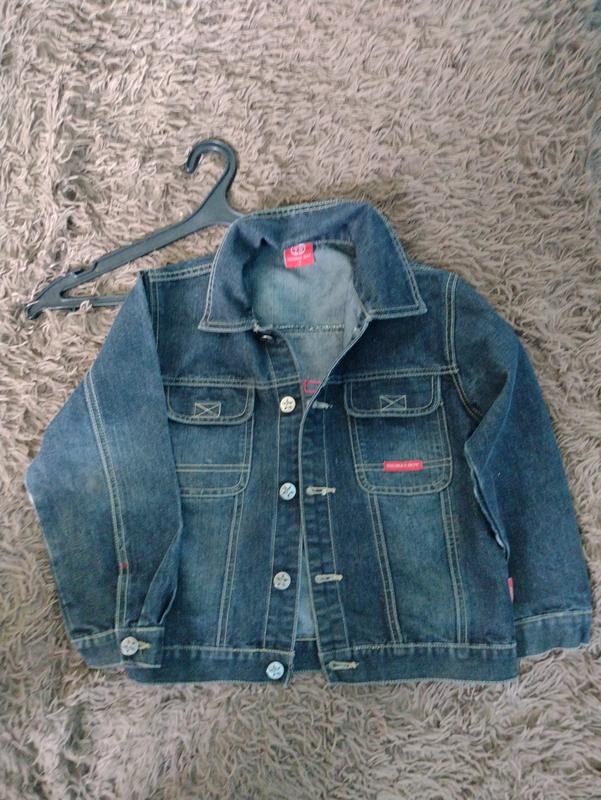 Дитяча джинсова куртка темно- синього кольору. Є дефекти ( затертості на рукавах( фото 5,6))