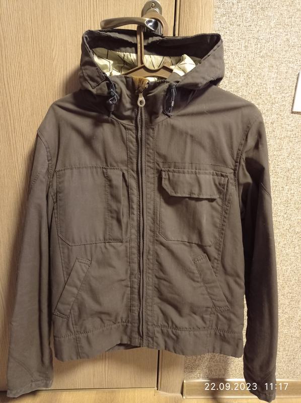 Куртка тепленька, з кишенями, з капюшоном. Довжина рукава - 67 см