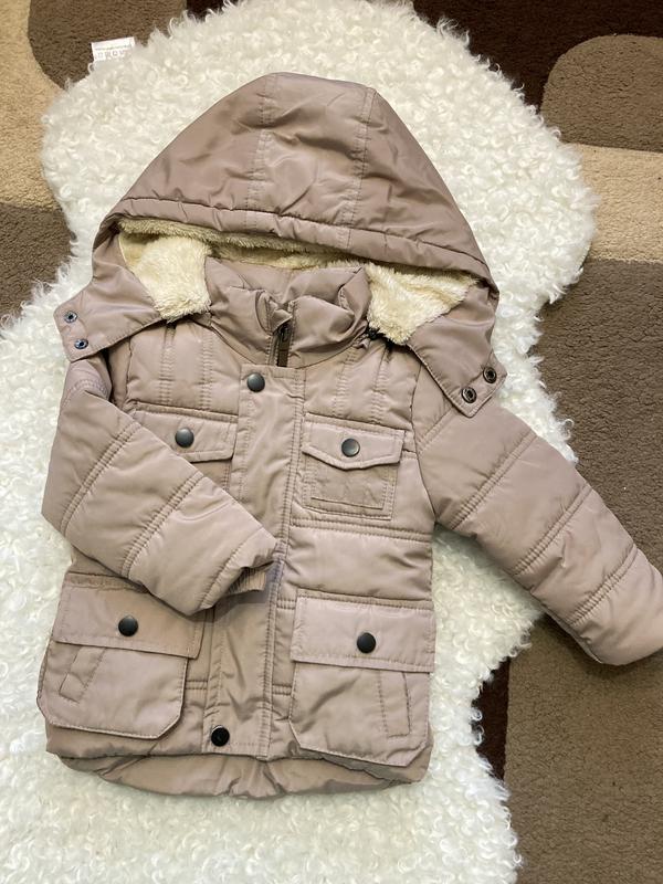 Теплая куртка, состояние хорошее, подойдет для мальчика и девочки. Капюшон отстегивается. Подойдет на 1-2 года замеры на фото. Длина - 40 см, рукав от плеча - 31 см, полуобхват груди - 31 см. Есть нюанс, следует зашить карманчик