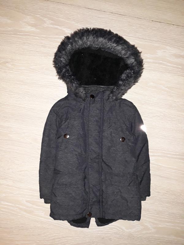 Фирменная, стильная парка практичной расцветки мальчику на 1,5-2,0 года отличном состоянии, без дефектов.внутри рукава есть трикотажный манжет. Верх-плотная ткань, подкладка-искусственный мех, внутри еще тонкий слой утеплителя. Подойдет для прохладного и относительно холодного межсезонья, примерно на плюс 2 плюс 10. Красивый практичный цвет. Есть светоотражающие элементы Замеры: длина по спинке от плеча 43,5 см впереди немного короче, ширина между подмышками 33,5 см, плечи 29 см, рукав от плеча 32 см, плечо 7 см, по внутреннему шву 23,5 см Производитель: Primark Размер: 2 / 92 Цвет: Серый
