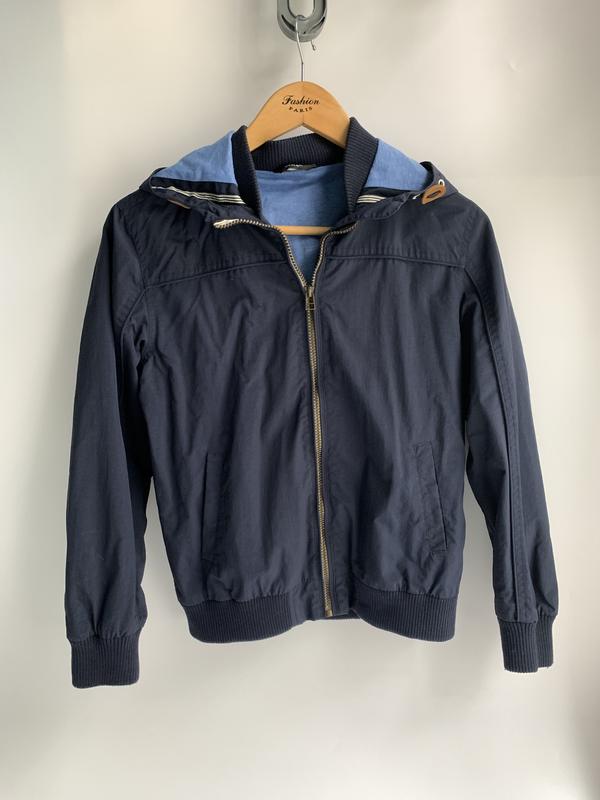 Вітровка щ капюшоном на котоновій підкладці, стан ідеальний, без нюансів на вік 11-12р Довжина 54 см Ширина під пахвами 48 см Плечі 37 см Рукав 52 см