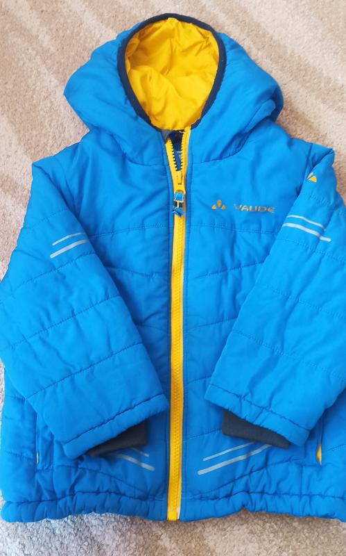 Куртка дитяча блакитного кольору в хорошому стані. На холодну осінь, теплу зиму з капюшоном, рукави з манжетами, є леть помітні нюанси, на 3-4 роки