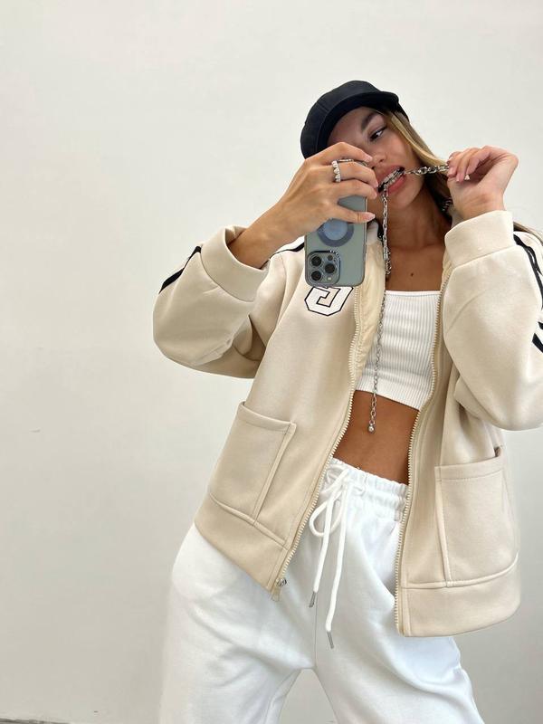 Бомбер Модель 994 ☑️ Ціна 790 грн Розмір 42-46, 48-52 Тканина трехнить на флісі , Туреччина Колір молоко та сірий