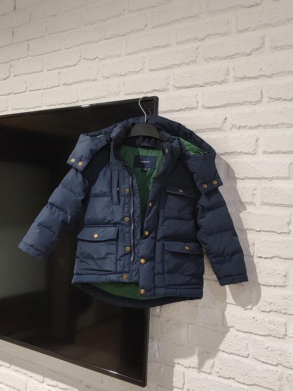 розмiр 98 , темно синя, внизу регулятори ширини, капюшон можна зняти, йде на тонкому пуху, не продуваэться, стан як на фото , без дефектів