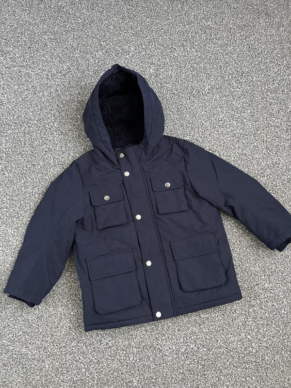 ✔️Гарний стан ✔️Мʼяка та тепла всередині ✔️Темно синій колір Розмір 110-116 см Заміри: Довжина - 51 см Плечі - 35 см ПОГ- 45 см Довжина рукава - 43 см