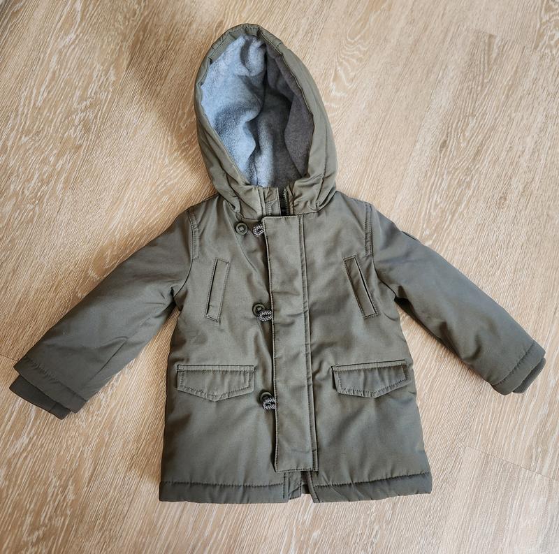 Продам курточку на хлопчика в ідеальному стані, колір хакі. Розмір 18 місяців. Нлсили до 2,5 років. Заміри: Від плеча до низу довжина 40 см Довжина рукава від плеча - 31 см Ширина 31 см