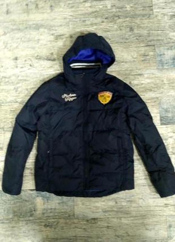 Довжина спереді -62, спина -65, ПОГ-53 , ширина низу-48,рукав -59, внутрішній шов 48, плечі -44. 100% polyester, наповнювач синтепух. Стан дуже хороший. Плям порізів нема. Пух не збитий,капюшон на замку.сезон : холодна осінь - тепла зима. Відправлення після оплати. Нова пошта укр пошта