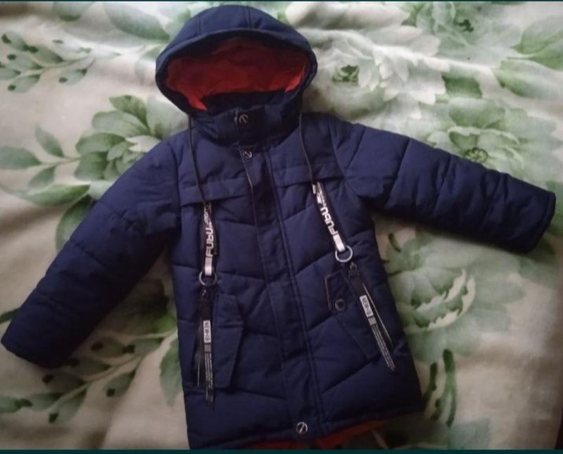 Продам дитячу зимову термо куртку... На зріст по бірці 116 см.. але ми з радістю проносили 2 зими завдяки манжетикам... Тому буде із запасом... 5 замочків ( усі справні)... Єдина погрішність закльопка біля карману ( на фото показала)...