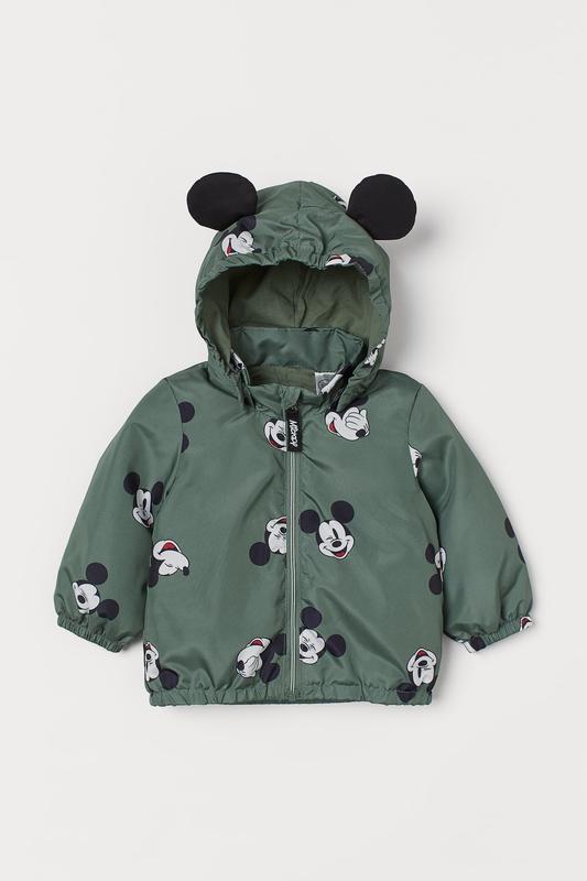 Куртка з Мікі Маус зі знімним капюшоном з вушками, коміром-стійкою та блискавкою спереду із захистом підборіддя. Покрита гумка навколо капюшона, манжетів та низу. На підкладці з флісу. Довжина рукава від плеча - 33см Ширина під руками - 34см Плечі - 28см
