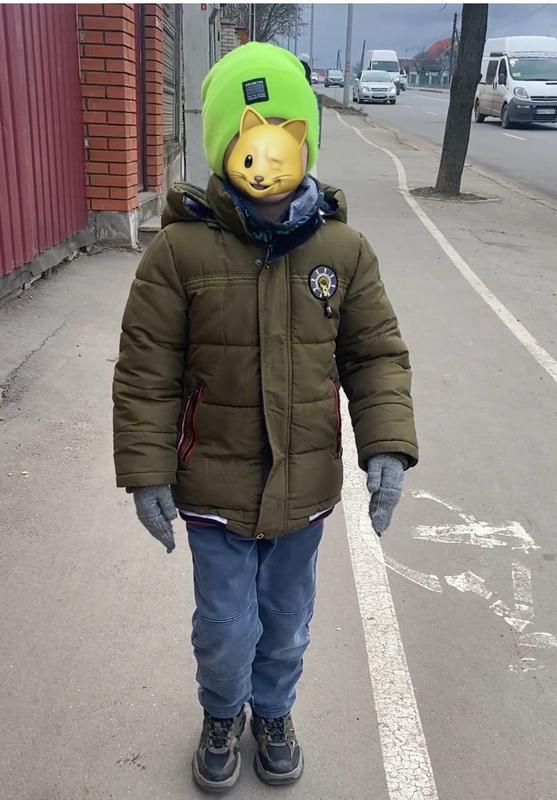 Дуже тепла зимня куртка. На фото хлопчик зростом 115 см, на бірці вказано 110, але розмір більшомірний. Підклад сінтепон +фліс. Рукава мають манжети-резинки. Блискавки, кльопки усі працюють. Хутро на капюшоні відстьобується. Нюансі на рукаві (фото) Розміри: Довжина 55, ширина 40, рукав по плечу 40, під пахвою 31.