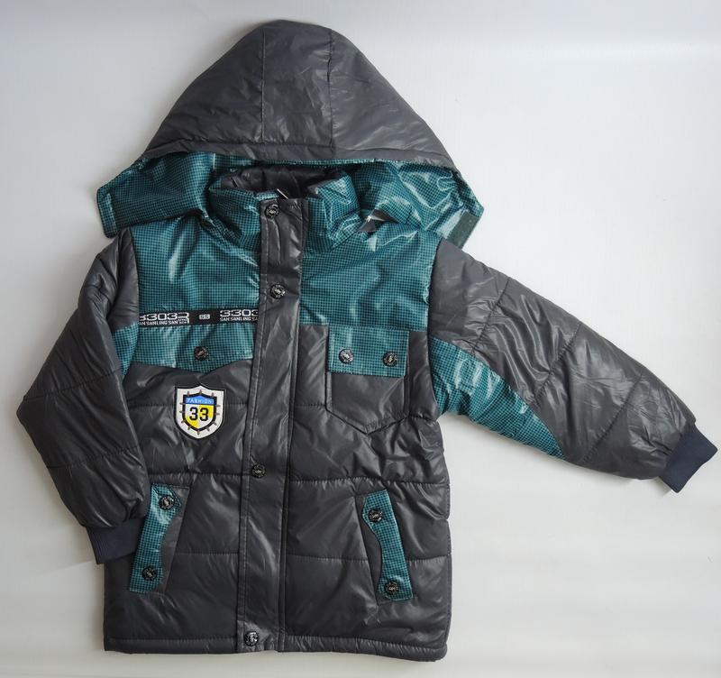 Демісезонна стьобана куртка для хлопчика. Наповнювач силіконізований синтепон. Легка і одночасно тепла, рукав на резинці, дві кишені (лісточка), капюшон з'ємний, застібка блискавка. Виробник Китай.