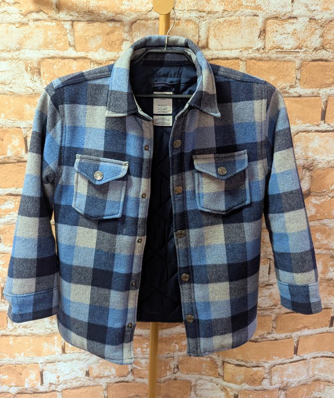 Куртка з утеплювачем(синтепон) у вигляді рубахи Gap, на кнопках. Ширина 45 (враховуйте, що вона не тонка), довжина від комірця 60-62, рукав від плеча 49см,плечі 38см. Наявність з'ясовуйте.