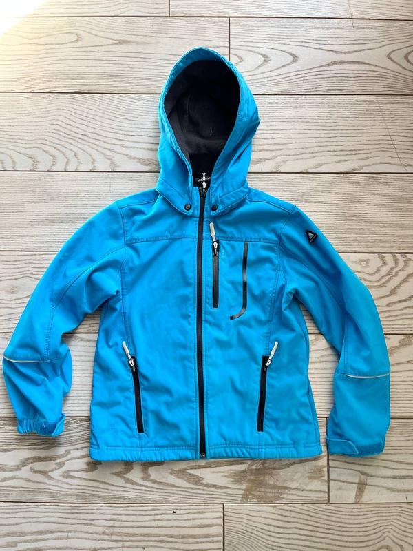 Дитячий софтшел Icepeak -каптур повністю відстібається -регулювання манжет -кишеня на грудях -дві кишені по бокам -світловідблискувачі -розмір на зріст 140 -хороший стан -ціна 399 грн